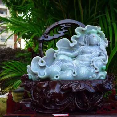精美水润 三彩 精美 巧雕 巧色 精美 自在观音菩萨 观音菩萨摆件 尺寸 320.290.150裸石尺寸 170.230.50裸石重量4.6斤 搭配精美高档檀木底座 送礼佳品