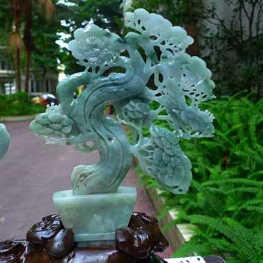翡翠A货 老坑水润精工细雕迎客松摆件 约裸石尺寸:210/190/17.8mm 215/150/31mm重量:1240g 送证书。实物自然光实拍,图片就是最好的描述,请放大看清楚 图片和尺寸后再出价,(尺寸建议用笔在纸上画下感觉下大小)本店多渠道销售,请拍到的朋友尽快付款。谢谢大家关注!