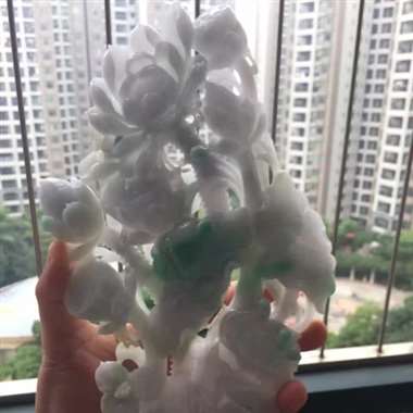 翡翠A货老坑水润双彩精工高风亮节玉兰花摆件 约裸石尺寸:190/105/20和195/120/15