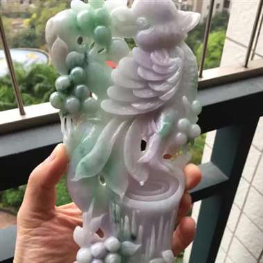 翡翠A货老坑水润双彩精工指日高升山子摆件 约裸石尺寸:125/145/30*140/100/25 连