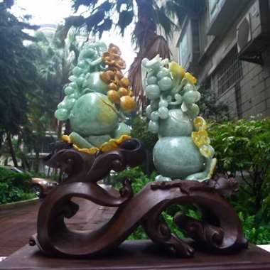 翡翠A货老坑水润双彩福如东海绿葫芦摆件 约裸石尺寸:160/100/40*190/80/47 连底坐:315/290/105mm 重量:1550g