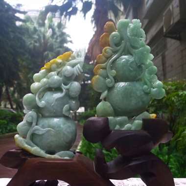 翡翠A货老坑水润双彩福如东海绿葫芦摆件 约裸石尺寸:160/100/40*190/80/47 连底坐