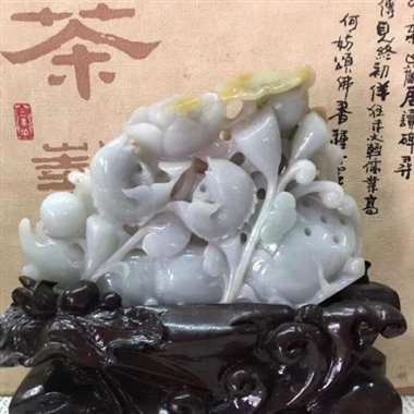 缅甸天然翡翠A货 精美水润 冰糯 浅绿色 双龙戏珠 雕刻精美线条流畅 种水好 搭配精美高档檀木底座