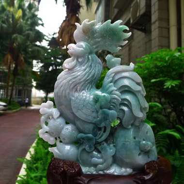 翡翠A货老坑水润浅绿精工加官进爵公鸡摆件 约裸石尺寸:220/170/50 连底坐:330/190/