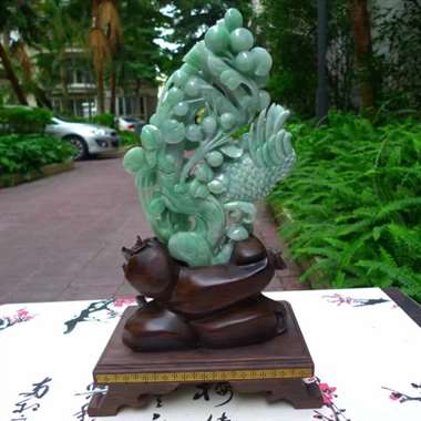 翡翠A货老坑水润飘阳绿精工福瓜飞黄腾达摆件 约裸石尺寸:175/120/35 连底坐:300/185