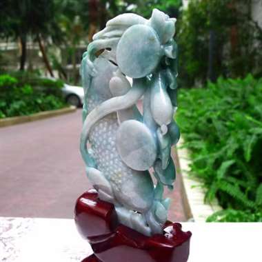 翡翠A货老坑水润飘绿精工飞黄腾达福瓜硕果摆件 约裸石尺寸:160/90/30 连底坐:300/140/80mm 裸石重量:520克。送证书。实物自然光实拍,图片就是最好的描述,请放大看清楚 图片和尺寸后再出价,(尺寸建议用笔在纸上画下感觉下大小)本店多渠道销售,请拍到的朋友尽快付款。谢谢大家关注!