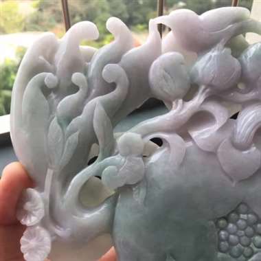 翡翠A货老坑水润紫罗兰精工人生如意百财聚来摆件约裸石尺寸:230/130/12 连底坐:340/21