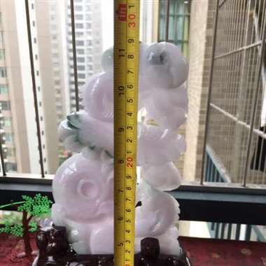 翡翠A货老坑水润春带彩精工君子之风兰花双喜临门摆件 约裸石尺寸:170/190/40 连底坐:250