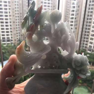 精美精美 春带彩 精美 喜上眉梢 花开富贵 雕刻精美线条流畅种水好 搭配精美高档檀木底座 尺寸430