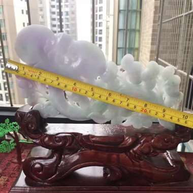 翡翠A货老坑水润精工花开富贵牡丹花摆件 约裸石尺寸:270/160/55 连底坐:390/205/8