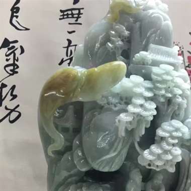 精美水润 黄加绿 山水摆件 雕刻精美线条流畅种水好 尺寸 440.320.140裸石尺寸240.16