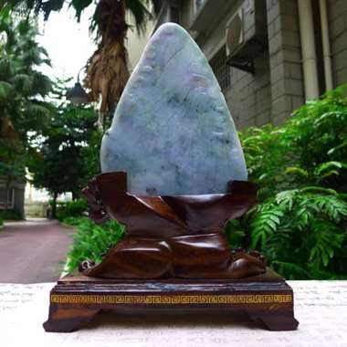 翡翠A货老坑水润浅绿冰透事事如意摆件约裸石尺寸:100/220/20 连底坐:240/240/100
