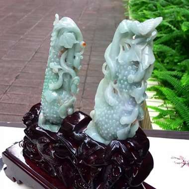翡翠A货老坑水润浅绿精工一对飞黄腾达摆件 约裸石尺寸:185/70/40*180/75/25 摆好连底坐:310/240/110mm 重量:890克送证书。实物自然光实拍,图片就是最好的描述,请放大看清楚 图片和尺寸后再出价,(尺寸建议用笔在纸上画下感觉下大小)本店多渠道销售,请拍到的朋友尽快付款。谢谢大家关注!