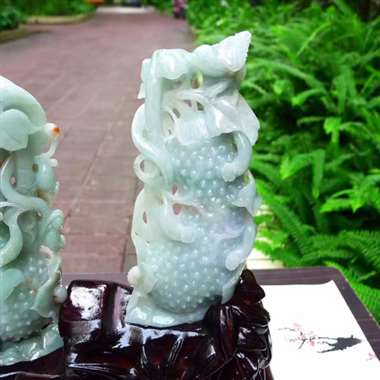 冰糯种飘花瓶子一对 寓意平平安安 健健康康