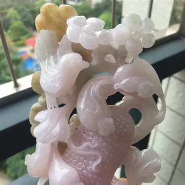 新精美雕刻栩栩如生,紫底飘花翡翠,厚庄饱满圆润大气上档次喜欢的要速度哦
