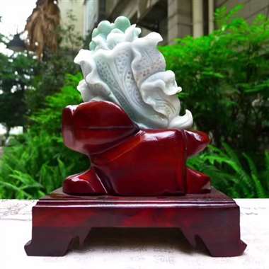 翡翠A货老坑水润浅绿精工和和美美荷花摆件 约裸石尺寸:195/135/40*180/150/35 连