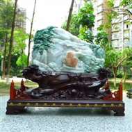 翡翠A货老坑水润飘阳绿精工松下老人山子摆件 约裸石尺寸:120/90/15 连底坐:220/150/