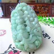 翡翠A货老坑水润春带彩多子多福富甲天下葡萄摆件 约裸石尺寸:190/75/70 连底坐:350/22