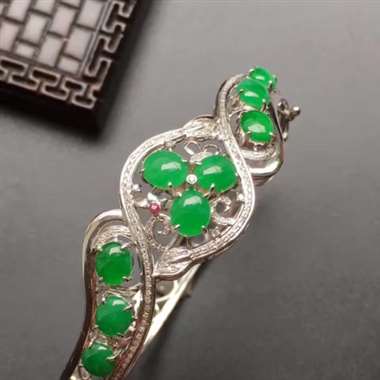 冰正阳绿蛋面18k金镶嵌手链,裸石:4.8*3.9*1.7,种色好,时尚高档!