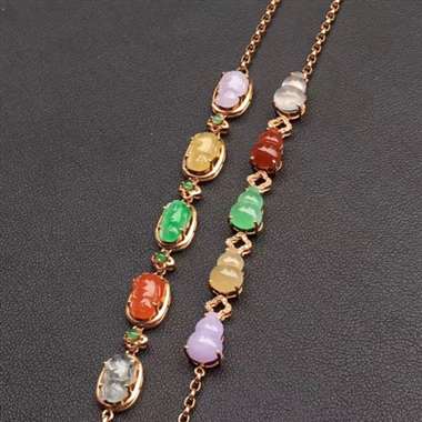 18K金镶嵌冰种各色手链,种老冰透,玉质细腻,完美饱满,性价比高,自然光实拍,裸石大小:9.4/6.