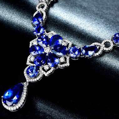 18K5A级坦桑石豪华项链,坦桑石30.55ct,配钻3.85ct,总重36.72g