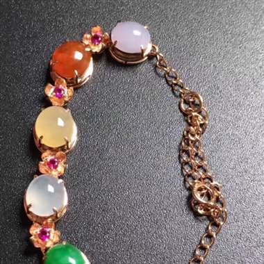 多彩蛋面手链,真金真钻镶嵌,完美,种水超好,玉质细腻