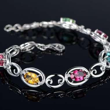 18K金彩色多色宝石手链,主石5*7*6粒,5.05ct,重量9.79g