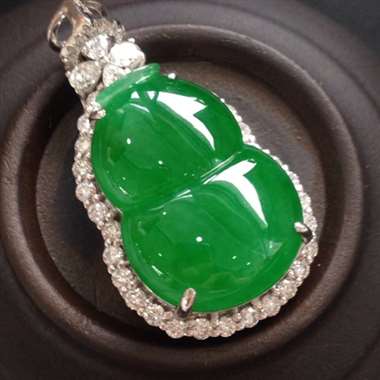 冰种满绿18k伴钻镶嵌葫芦吊坠,完美!