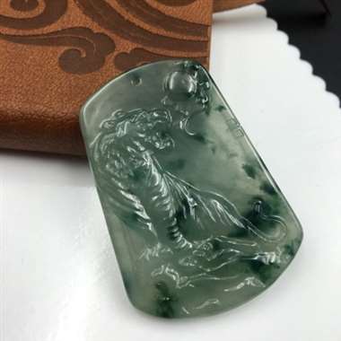 冰种极品墨翠无事牌吊坠,完美无纹裂,黑度极度黑,玉质细腻,打灯通透,少杂质。尺寸:41.3*25.3