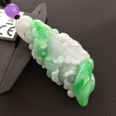 阳绿如意吊坠,真金真钻镶嵌,完美,种水超好,玉质细腻.