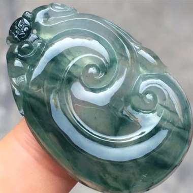 福利!冰种飘彩如意:完美无裂纹,有水路,种老起胶,雕工精致,色泽漂亮,饱满,尺寸:40.6/27.5