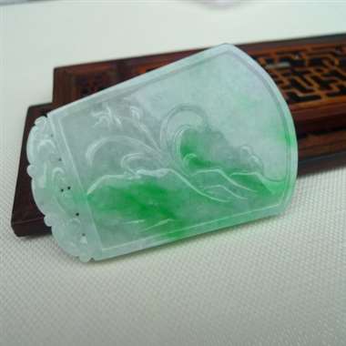 春带彩芙蓉种翡翠牌挂件随着人们审美的不断提高,翡翠题材也在不断更新,一些极富