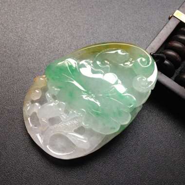 L阳绿叶子吊坠,真金真钻镶嵌,完美,种水超好,玉质细腻。