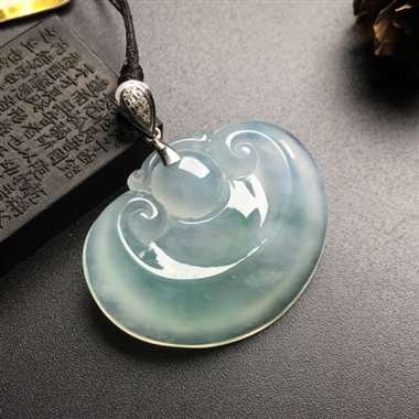 冰种带黄翡完美龙牌。尺寸:49.7*34.1*4.3