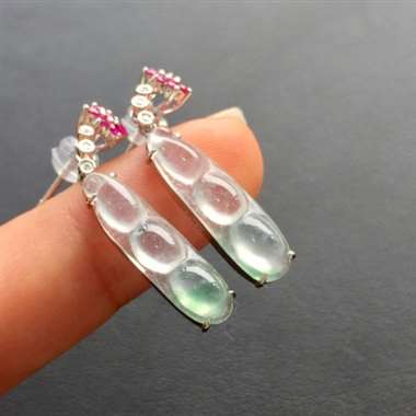 冰种飘绿18k金镶嵌豆子耳坠