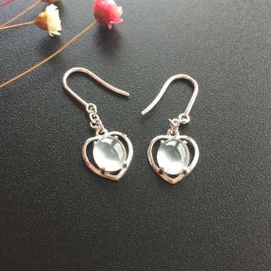 阳绿葫芦耳钉,真金真钻镶嵌,完美,种水超好,玉质细腻