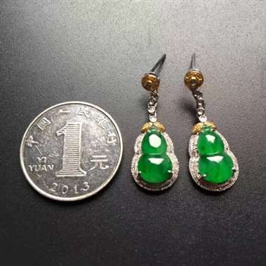 冰绿葫芦18K镶嵌耳坠