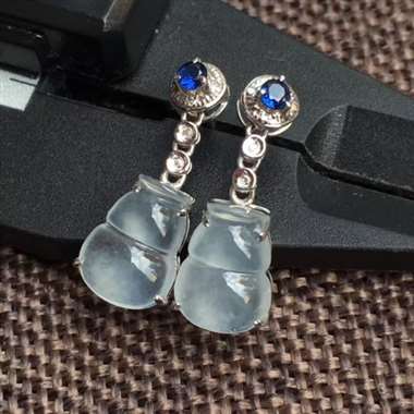 18K金镶嵌冰种葫芦耳坠,种好起光,玉质细腻,饱满圆润,性价比高,自然光实拍,裸石大小:10.2/8