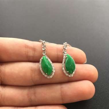 冰种满绿18k金豪华镶嵌耳坠,略有纹裂 不影响美观。裸石尺寸:8.6-6.0-3.8