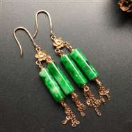 正阳绿滴水18K镶嵌耳环,色正艳丽,大气上档次!