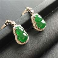 冰种阳绿福禄耳坠 18k金镶嵌 裸石尺寸10-6-2毫米