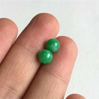 阳绿 珠子 可镶耳坠、吊坠 阳绿 质地细腻 水头好 颜色漂亮 无纹裂 直径6.8 毫米镶嵌后效果倍