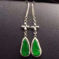 冰种阳绿福禄耳坠 18k金镶嵌 裸石尺寸10-6-2毫米