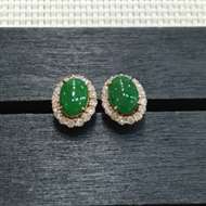 冰种满绿18k金镶嵌耳坠 略有纹裂 不打灯不见 不影响美观 裸石:10.7-7.3-3.6