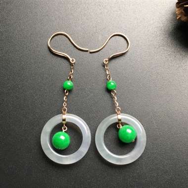 环环相扣满绿平安扣18k耳坠,有晶体纹无抠感
