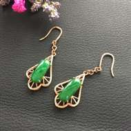 冰种满绿完美18k金镶嵌耳坠。尺寸:10.2*5.2*1.9