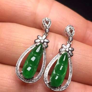 满绿福豆耳钉,种色一流,玉质细腻清爽,完美