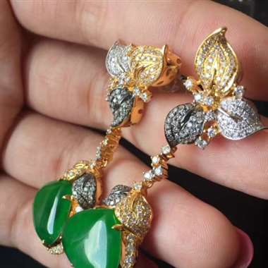 正阳绿滴水18K镶嵌耳环,色正艳丽,大气上档次!