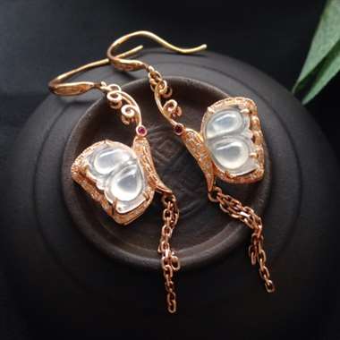 冰种晴水佛手耳坠 18K金镶嵌 裸石17-6-3毫米