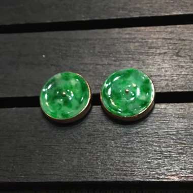18K金镶嵌冰种飘花平安扣耳钉,种好色辣,饱满大气,性价比高,自然光实拍,裸石大小:7.8/4mm